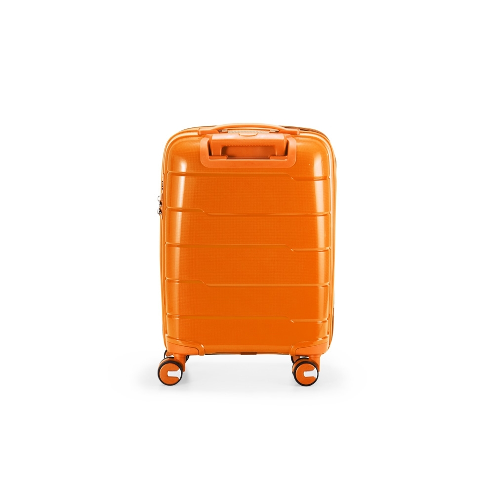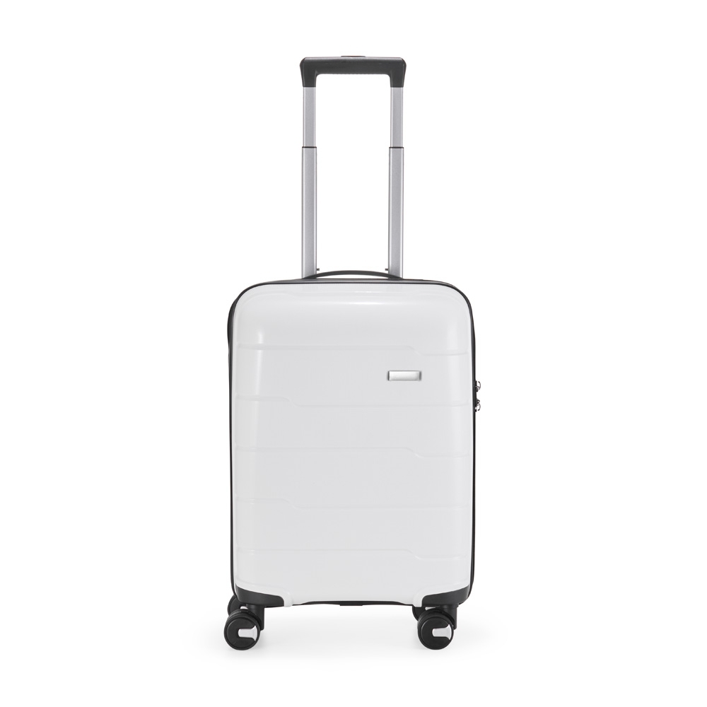 Descrição: Mala de bordo 40 litros em plástico (casca dura), contém cadeado numérico TSA. Compartimentos com bolso telado e cinta compressora para roupas. A mala possui duas alças de mão, puxador retrátil com regulagem de tamanho, quatro rodinhas 360º e apoios laterais. Acompanha placa para personalização.