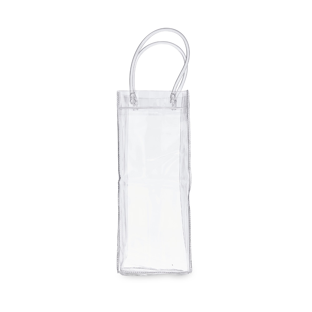 Sacola plástica para gelo com alça. Icebag serve para transportar garrafas exemplo: vinho, champagne, vodka… Basta colocar gelo e transportar seu cooler prático. OBS.: Para prolongar a vida útil do material pvc, atente-se as condições ideais de armazenamento: mantenha o material em local seco e arejado, livre da exposição ao sol e altas temperaturas. Após a utilização da icebag com gelo, certifique-se de secar completamente o material antes de guardá-lo, pois o armazenamento deste em estado úmido poderá comprometer a sua vida útil.